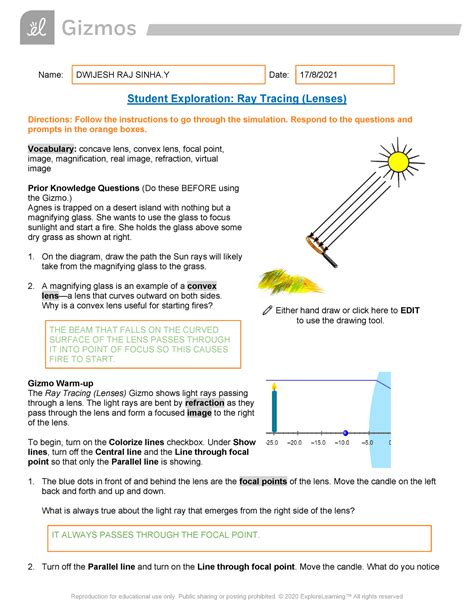Student Exploration Ray Tracing Lenses Answer Key